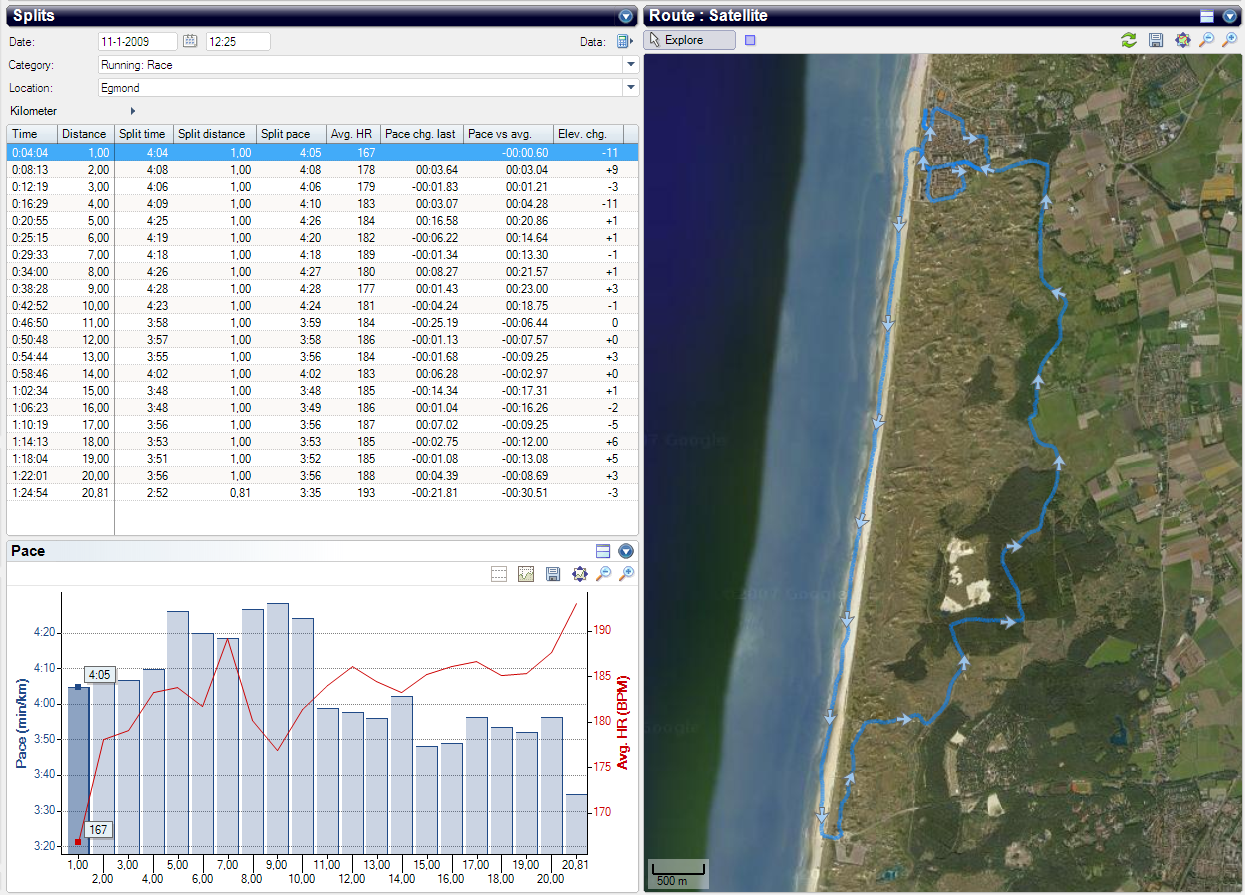 Vreemd was wel weer de afstand die mijn GPS had gemeten, 20,8 km. Precies hetzelfde als vorig jaar. Klopt de afstand van de wedstrijd wel?