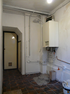 Afgelopen weekend hebben we ook nog verder gewerkt aan het berghok. Dit moet de werk-/computerkamer worden, zodat op de 2de verdieping een kinderkamer vrijgemaakt kan worden voor de tweeling. In een eerdere blog post was ik al aan het opruimen geweest, nu zijn de buizen rondom de CV-ketel omgelegd, is elektriciteit aangelegd en zijn we vast begonnen met het witten van de ergste vlekken op de muren en van de verschillende buizen. De buizen worden in glanzend wit geverfd, op de muren komt structuurverf. A.s. weekend, als ik de marathon van Amsterdam loop, komen mijn schoonouders langs om te helpen met klussen.